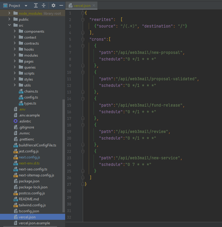 <figure><img src="https://1292612581-files.gitbook.io/~/files/v0/b/gitbook-x-prod.appspot.com/o/spaces%2FLxwTmt3MOuMIlBTH8NKY%2Fuploads%2FdhGrqaJE51Wyhi5dNBwN%2Fimage.png?alt=media&#x26;token=03cb8c3c-199b-4a55-98a0-851c37e161e8" alt=""><figcaption><p>Vercel Cron Notification workflow for "New Proposal" notification</p></figcaption></figure>